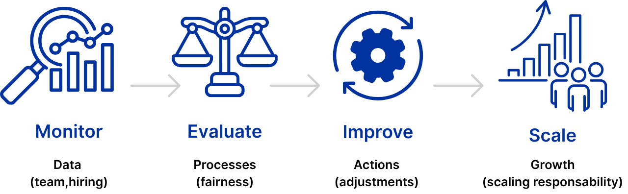 We monitor key indicators such as team composition and hiring practices, ensuring our growth remains aligned with our principles.